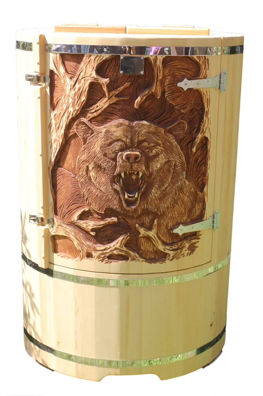 Резьба на дверце кедровой бочки