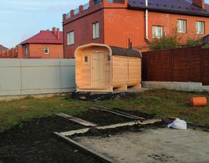 Долго думали, но все-таки решились на покупку бани-бочки. Участок у нас небольшой, банька смотрится отлично, соседи оценили. Ее большой плюс в том, что она мобильна, сначала поставили в одном месте на участке, в последствии решили переместить. Очень классно после трудового дня на огороде попариться в такой баньке. Теперь подумываем о покупке купели. Если решимся, то конечно же только у вас!